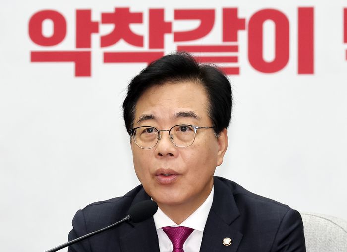 송언석 국민의힘 비상대책위원장 겸 원내대표가 1일 오전 국회에서 열린 원내대책회의에서 발언하고 있다. ⓒ뉴시스