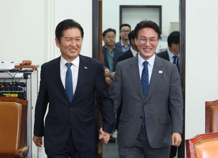 정 대표는 "나나 김 총리나 이재명 대통령의 속마음과 철학을 제일 많이 파악할 것이라 본다"며 "굳이 두 분 사이를 말하지 않아도 '이심김심'으로 잘해나가리라고 본다. 나 또한 '이심정심'으로 굳이 대화하지 않아도 이 대통령의 철학을 잘 파악하겠다"고 덧붙였다.
