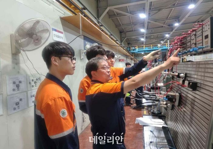 포스코 포항제철소는 제철소에서 국가기술자격 실습장을 운영해 직원들의 국가기술자격 취득을 지원하고 있다. 사진은 신입 직원들에게 유압 교육을 하고 있는 모습. 위 사진은 본 기사 내용과 관련 없음. ⓒ뉴시스
