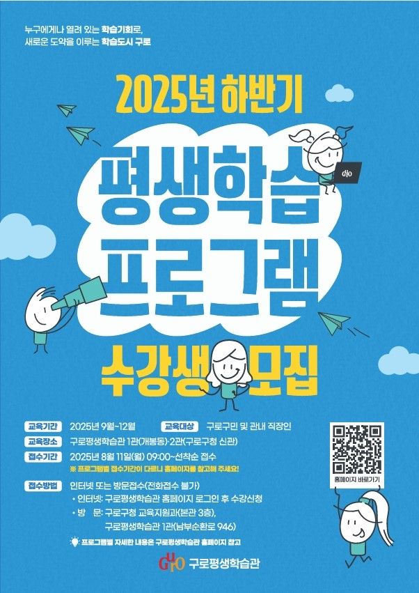 서울 구로구(구청장 장인홍)는 이달 11일부터 2025년 하반기 구로평생학습관 수강생을 모집한다고 7일 밝혔다.