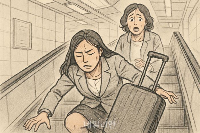 만약 엘리베이터가 없어 에스컬레이터를 이용해야만 한다면 캐리어가 떨어지지 않도록 꼭 붙잡아야 안전하다.