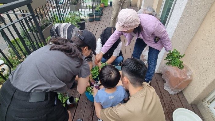 '가족이 있는 정원' 프로그램에 참여한 가족들이 함께 식물을 심으며 도심 속 정원문화를 체험하고 있다.ⓒ구로구 제공