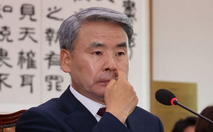이종섭 전 국방부 장관이 지난해 6월 21일 오전 서울 여의도 국회에서 열린 법제사법위원회의 순직 해병 수사 방해 및 사건 은폐 등의 진상규명을 위한 특별검사의 임명 등에 관한 법률안 관련 입법청문회에서 잠시 얼굴을 만지고 있다.ⓒ뉴시스