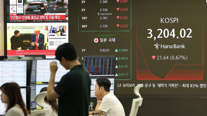 도널드 트럼프 미국 대통령이 반도체 관세 부과를 예고하면서 불확실성이 확대되자 국내 증시가 약세를 보이고 있다. 반도체 관련주가 일제히 내리고 있는 여파로 코스피는 3200선 아래로 밀려났다.