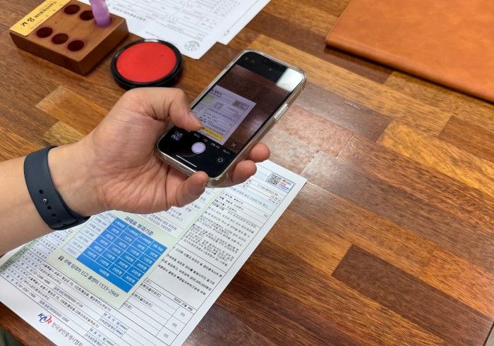 계약서 신고 QR코드 스캔 모습ⓒ성동구 제공