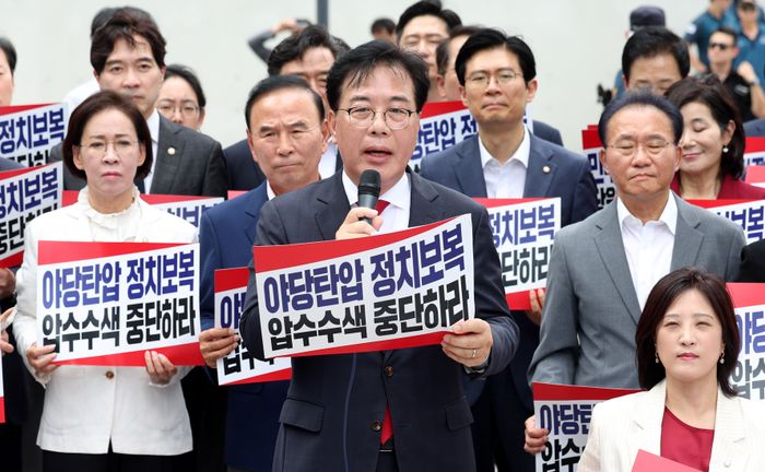 이어 "민중기 특검이 자행한 반인권적 압수수색은 하루이틀 일이 아니다"라며 "김선교 의원, 윤상현 의원, 권성동 의원을 비롯한 야당 국회의원에 대해 충분한 근거도 없고 증거도 없이 사무실뿐 아니라 주거지마저 압수수색하는 것은 무차별적인 망신주기 압수수색에 불과하다"고 비판했다.