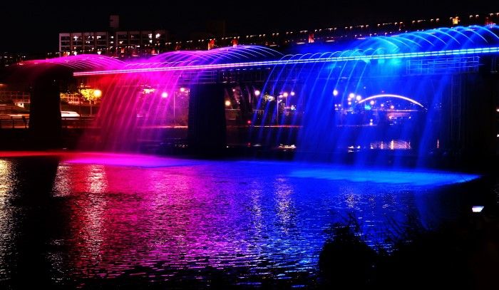 교량분수에 레이저4대 결합,미러기술도 접목…전국 최초 적용 사례