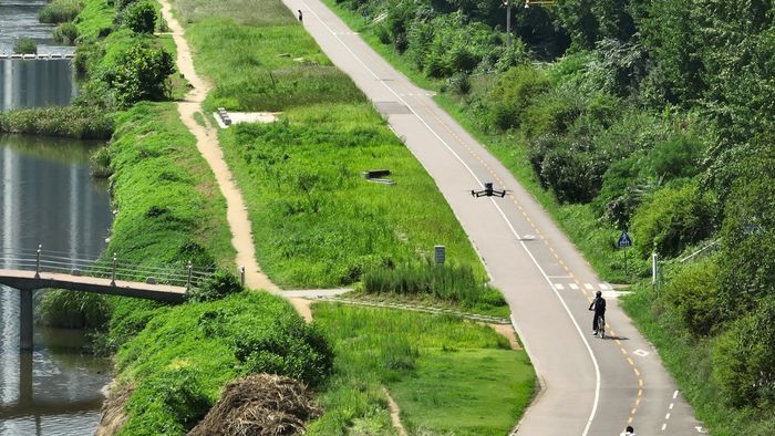 스피커를 탑재한 드론은 "현재 호우주의보가 발효 중입니다. 안전사고 예방을 위해 하천변 산책로 침수 위험이 있으니, 이용을 삼가주시기 바랍니다" 등의 음성 안내방송을 송출한다.