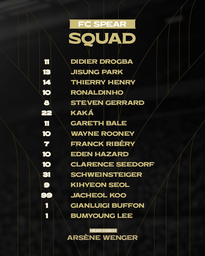 넥슨은 지난 22일(금), 벵거 감독이 직접 ‘FC 스피어’ 선수들을 한 명씩 호명하는 영상을 공개했다. 벵거 감독은 "드로그바를 상대하는 것은 언제나 두려운 일이었다", "베일이 토트넘에 있을 때 악몽 그 자체였다”, "제라드를 지도하게 돼서 너무 기쁘다”며 라인업에 만족감을 드러냈다.