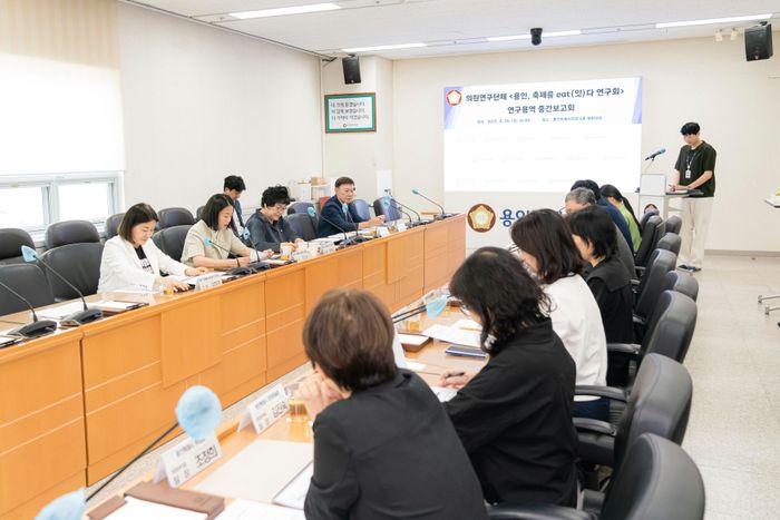 용인특례시의회 의원연구단체 '용인, 축제를 eat(잇)다 연구회'는 25일 의회 4층 대회의실에서 연구용역 중간보고회를 열고, 그동안의 연구 성과를 점검하는 한편 향후 연구 방향을 논의했다.
