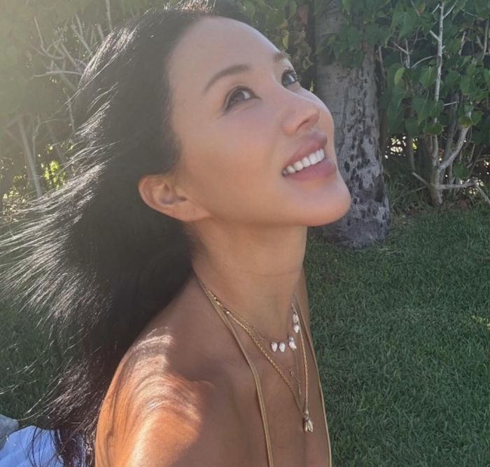 가수 겸 배우 엄정화가 야외에서 비키니 차림으로 태닝 중인 모습을 공개했다.