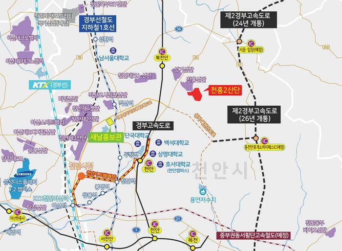 천안 천흥2산업단지는 2026년 개통예정인 세종포천고속도로(제2경부고속도로) 서운입장IC와 더불어 경부고속도로 북천안IC, 국도1호선 및 지방도623호선과 인접한 물류 이동의 중심지로써 접근성과 운송 효율이 상당히 우수하고 또한 인근에 위치한 천안 성거산업단지 및 천흥산업단지와의 시너지 효과로 첨단 산업 클러스터를 구축해 지역 산업의 경쟁력을 강화할 계획으로, 인공지능(AI), 로봇, 반도체, 정보통신기술(ICT), 차세대 자동차 등 첨단 신소재 산업을 중심으로 한 기업들의 입주가 예상되고 있다.