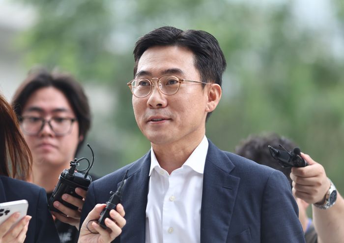 조영탁 IMS모빌리티 대표가 지난 20일 조사를 받기 위해 김건희 여사 관련 의혹을 수사하는 민중기 특별검사팀으로 출석하고 있는 모습. ⓒ연합뉴스