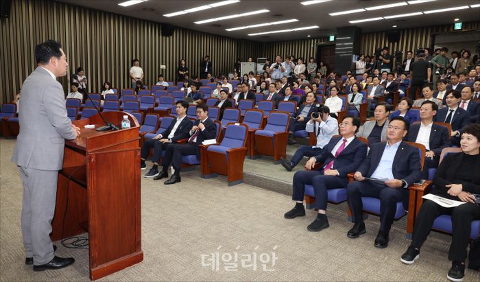 장 대표가 '전략적 톤다운'에 나선 점도 가능성을 낮춘다. 장 대표는 이날 오후에 열린 의원총회에서 "과거의 옷들을 벗어던지고 여당을 견제하고 이재명 정권과 맞서 싸우는, 앞으로 나아가는 일에만 힘을 모아 달라"고 했다. 이날 의원총회에서는 장 대표의 당선에 대한 축하와 덕담이 오간 것으로 알려졌다. 선거가 끝나고 당권을 쥔 만큼 당내 봉합을 위한 한 발 후퇴를 한 셈이다.