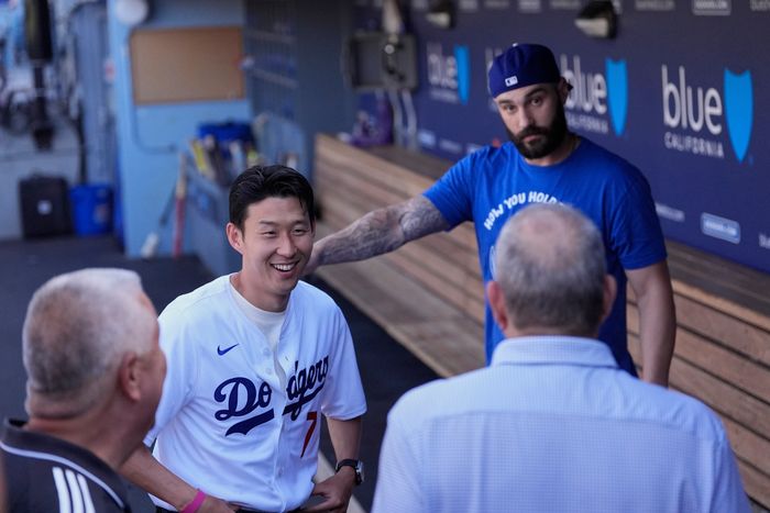 10년 동안 몸담은 잉글랜드 프리미어리그 토트넘을 떠나 최근 LA 연고 축구 구단인 LAFC에 입단한 손흥민은 이날 다저스 홈경기 시구 행사에 초청을 받았다.