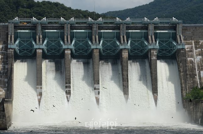 2023년 7월 10일 오후 충북 청주시 상당구 문의면 대청댐이 수위 조절 여유 공간 확보를 위해 수문 6개를 개방, 초당 1000t 물을 방류하고 있다(기사 내용과 관계 없음). ⓒ뉴시스