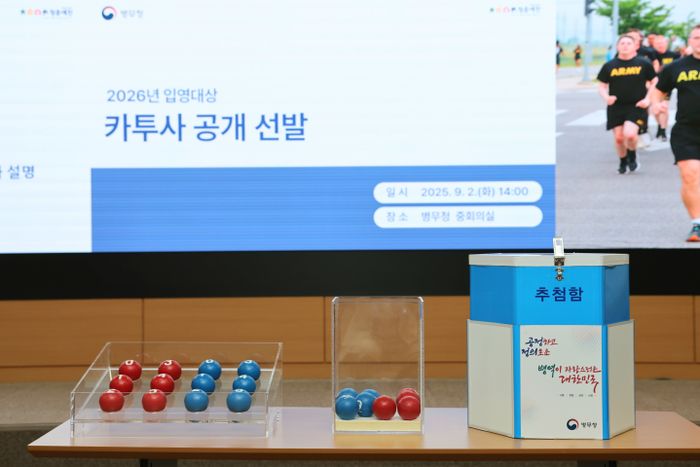 병무청은 2일 정부대전청사에서 내년 입영할 카투사(KATUSA·주한미군 배속 한국군) 1815명을 전산 추첨으로 공개 선발했다고 밝혔다.