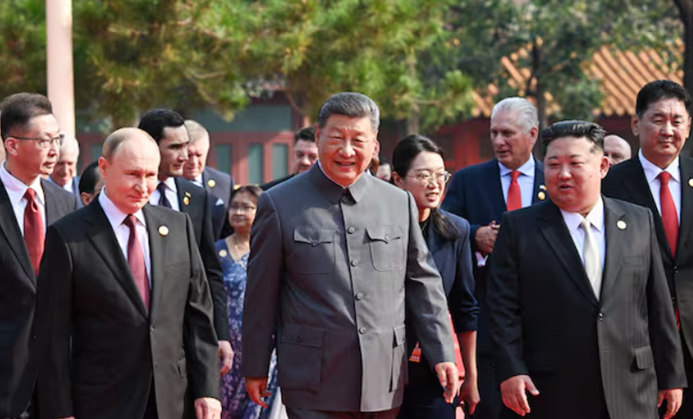 주요 외신은 김정은 북한 국무위원장, 시진핑 중국 국가주석, 블라디미르 푸틴 러시아 대통령이 3일 중국 베이징에서 한 자리에 모인 것에 대해 "반(反) 미국 연대 결성한 인상적인 장면"이라고 평가했다.