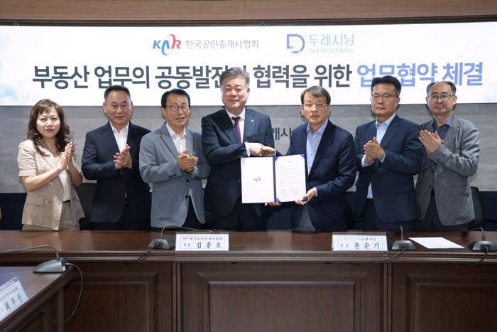 공인중개사협회는 4일 두레시닝·한국데이터경제연구소(KDEI)와 ‘부동산 업무 공동발전과 협력 업무협약’을 체결하고 회원 보유 부동산 매물에 대한 가치평가 등 각종 정보분석 서비스를 제공한다고 밝혔다.