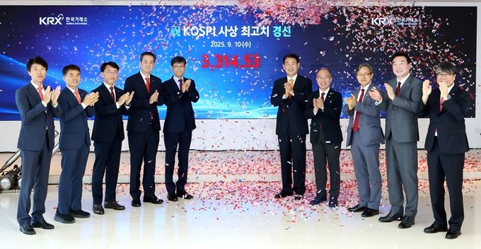 이날 코스피지수는 전 거래일 대비 54.48포인트(1.67%) 오른 3314.53에 거래를 마쳤다. 이는 2021년 7월 6일(3305.21) 이후 4년 2개월 만에 기록한 사상 최고치다.