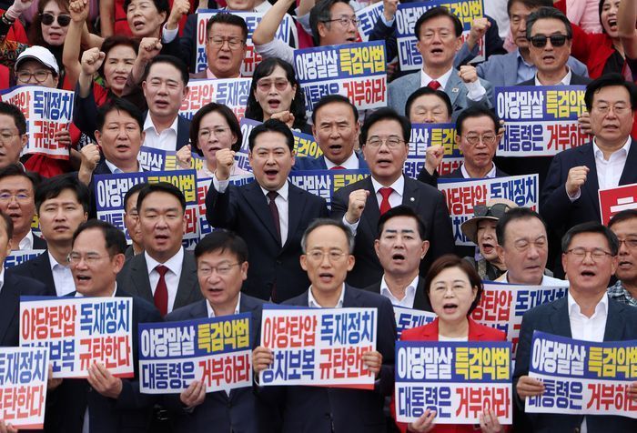 국민의힘이 '야당 탄압 독재정치 규탄대회'를 열고 이재명 정부를 향한 신랄한 비판을 이어가며 당내 결집에 나섰다.