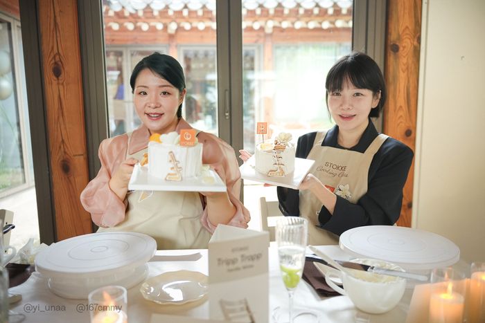 스토케 트립트랩 바닐라 화이트 쿠킹 클래스에서 만든 케이크를 선보이는 예비 엄마들.ⓒ스토케