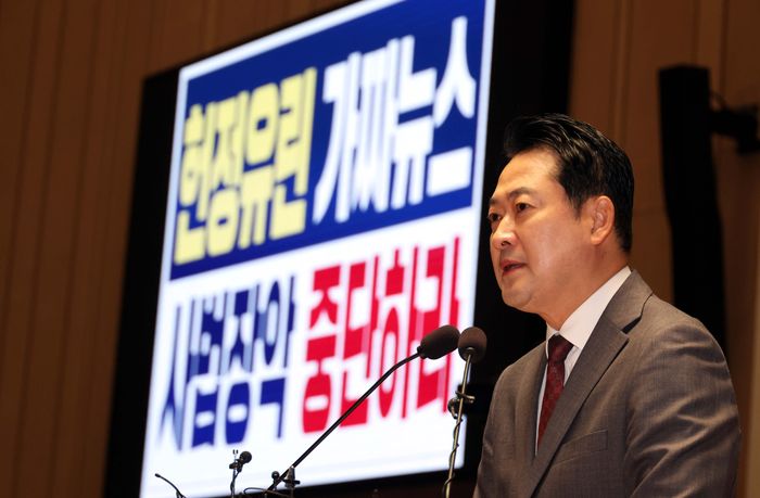 장 대표는 "이것은 사법부 장악을 위한 거대한 음모에서 비롯된 파렴치한 중대범죄"라며 "면책특권은 공작 정치인들에게 부여된 날조 면허증이 절대 아니다"고 지적했다.