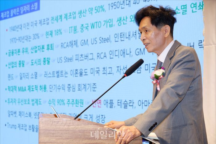 최 교수는 24일 오전 서울 여의도 CCMM빌딩에서 'K-제조업 붕괴론과 산업 코리아의 생존전략' 주제로 열린 '데일리안 2025 글로벌 경제산업 비전 포럼'에서 기조발제를 통해 "역사를 보면 많은 국가에서 민주당 또는 민주당 성향을 띤 정부일 때 과감한 개혁이 단행됐다. 이재명 정부에 대한 기대가 크다"면서 이같이 말했다. 최 교수는 '10년 후 한국 제조업의 퇴출, 섬뜩한 경고' 주제로 발표했다.