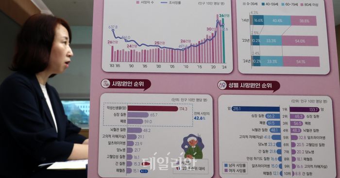 박현정 통계청 인구동향과장이 25일 세종시 정부세종청사에서 2024년 사망원인통계 결과를 발표하고 있다. ⓒ뉴시스