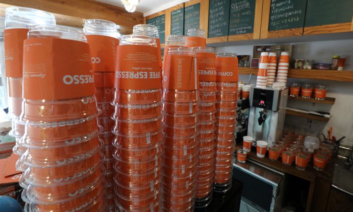 서울 시내의 한 카페에서 일회용 컵이 놓여 있다.ⓒ뉴시스