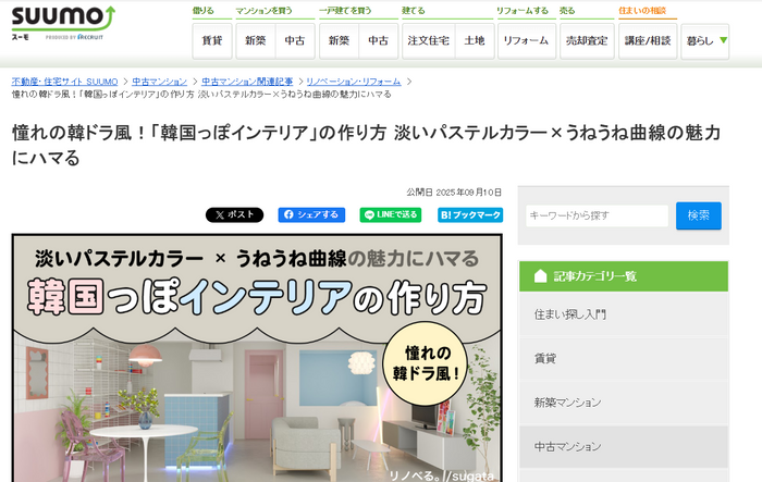일본 최대 부동산 플랫폼 스모(Summo)가 한국 인테리어에 대해 소개한 말이다. 최근 일본 20·30 세대를 중심으로 'K-인테리어'에 대한 관심이 확산하고 있다.