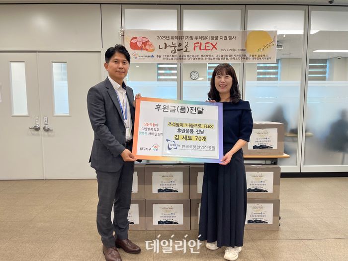 한국로봇산업진흥원은 대구서구가족센터를 방문해 2025년 취약위기가정 추석맞이 물품 지원 행사 '나눔으로 FLEX'에 동참했다고 30일 밝혔다.