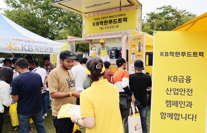 이날 KB금융은 ‘KB착한푸드트럭’ 사장님들과 함께 ‘2025 부산외국인근로자 다문화 축제’ 현장을 찾아 ‘KB산업안전 캠페인 Zone’을 운영했다.