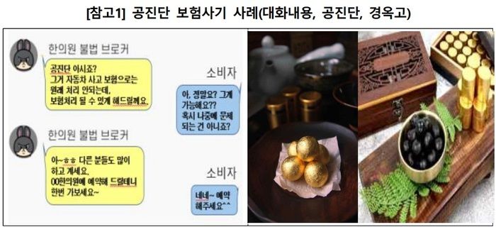 금감원은 “경미한 사고에도 불구하고 허위 입원이나 불법 첩약 제공을 권유받으면 보험사기에 연루돼 형사처벌을 받을 수 있다”고 경고했다.