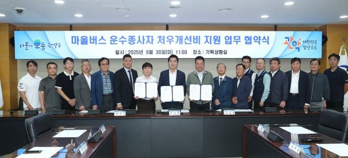 서울 관악구(구청장 박준희)가 지난달 30일 '마을버스 운수종사자 처우개선'을 위한 3자 업무협약을 체결하며 종사자 인력난 해소와 주민 교통편의 증진에 힘쓰고 있다고 1일 밝혔다.