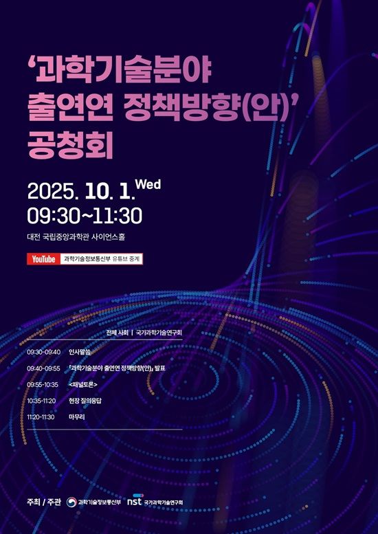 과학기술정보통신부는 1일 국립중앙과학관에서 과학기술분야 출연(연) 정책 방향 공청회를 개최했다.