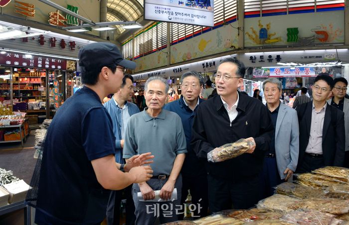 이형일 기획재정부 제1차관은 추석 명절을 앞두고 홍래형 해양수산부 수산정책실장, 이대건 중소벤처기업부 소상공인정책국장과 함께 1일 서울 중구 신중부시장을 방문해 추석 성수품 수급동향을 점검하고, 시장 상인들을 격려했다.