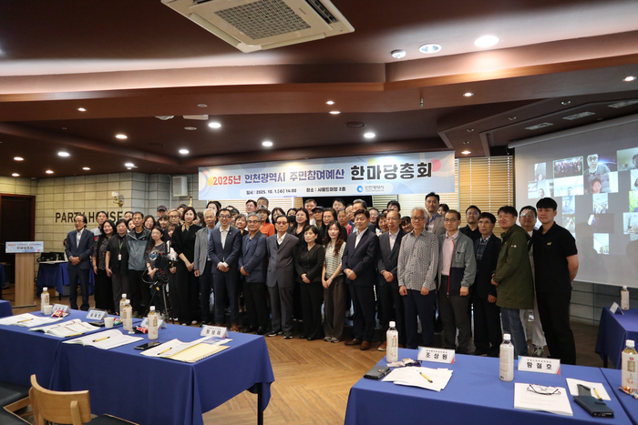인천시는 최근 ‘2025년 주민참여예산 한마당 총회’를 열고 총 28억 9200만 원 규모의 11개 주민참여예산 사업을 선정했다고 2일 밝혔다.