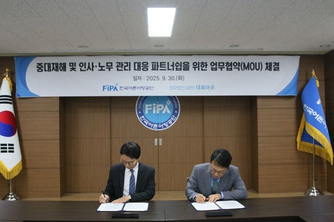 한국어촌어항공단(이사장 홍종욱, 이하 공단)은 지난 30일 법무법인(유한) 대륙아주와 ‘중대재해 및 인사·노무 관리 대응 파트너십을 위한 업무협약'을 체결했다.