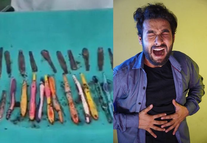 의료진이 초음파 검사를 한 결과, 그의 위장에서 다수의 이물질이 확인됐다. 의료진은 내시경으로 이를 제거하려 했으나 이물질의 수가 많고 모양이 날카로워 결국 개복 수술을 진행했다. 3시간30분에 걸친 수술 끝에 A씨의 위장에서 숟가락 29개, 칫솔 19개, 펜 2개 등 총 50개가 넘는 이물질을 꺼냈다.