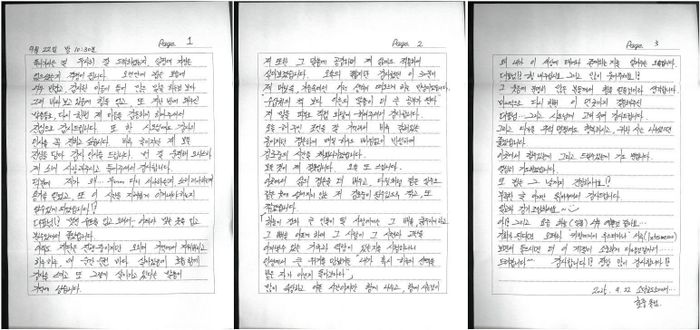 3일 송영길 대표는 자신의 소셜미디어(SNS)에 '추석 연휴 시작입니다. 가수 김호중 씨 소식을 전합니다'라며 김호중이 직접 써서 보낸 손편지 3장을 공개했다.