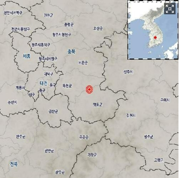 기상청은 8일 오전 11시 49분 39초 충북 옥천군 동쪽 17km 지역에서 규모 3.1의 지진이 발생했다고 밝혔다.