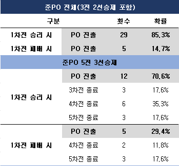 준플레이오프 1차전 승리팀의 PO 진출 확률. ⓒ 데일리안 스포츠