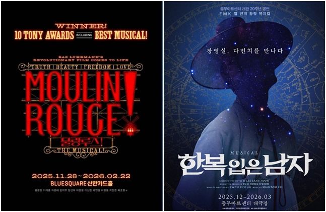 가장 주목받는 작품은 3년 만에 돌아오는 뮤지컬 ‘물랑루즈!’다. 11월 28일 블루스퀘어 신한카드홀에서 개막하는 이 작품은 1890년대 프랑스 파리를 배경으로 젊은 작곡가 크리스티안과 클럽 물랑루즈의 스타 사틴의 사랑 이야기를 그린다. 초연 당시 크리스티안 역으로 극찬받은 홍광호가 다시 무대에 오르며, 이석훈, 차윤해가 새로운 크리스티안으로 합류해 기대를 모은다.