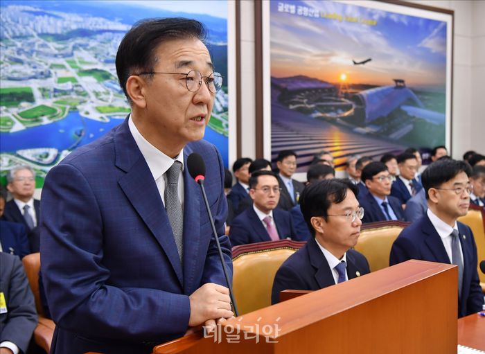 김윤덕 국토교통부 장관이 13일 서울 여의도 국회에서 열린 국회 국토교통위원회 국토교통부 2025 국정감사에서 업무보고를 하고 있다.