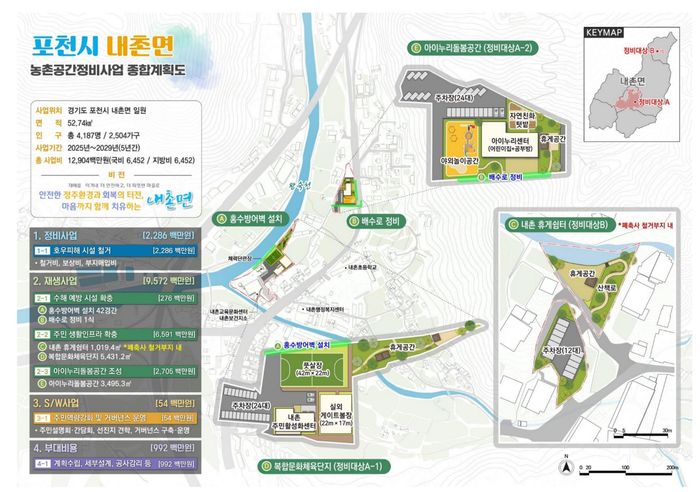 경기 포천시는 농림축산식품부가 주관하는 ‘2025년 농촌공간정비 추가공모사업’에 내촌면 공간정비사업이 선정돼 예산 129억 원을 확보했다고 밝혔다.