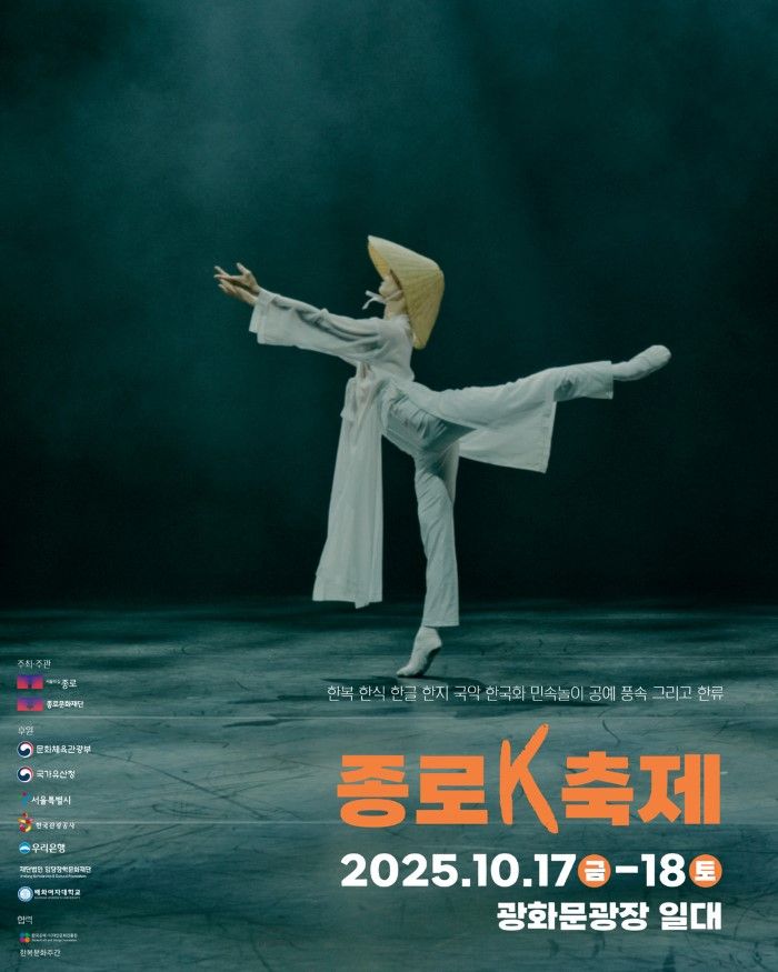 10월 축제의 서막을 여는 '종로K축제'는 17~18일 광화문광장에서 진행한다. 17일 오후6시30분,개막식 무대에서는 종로를 넘어 세계 무대에서 K-아름다움을 알리고 있는 종로구 한복디자이너와 AI크리에이터가 협력해 화려한 런웨이를 연출한다. 여기에 구전 속 인물, 삿갓, 놀부, 저승사자로 변신한 발레단의 공연이 더해진 K-퍼포먼스를 선보인다.