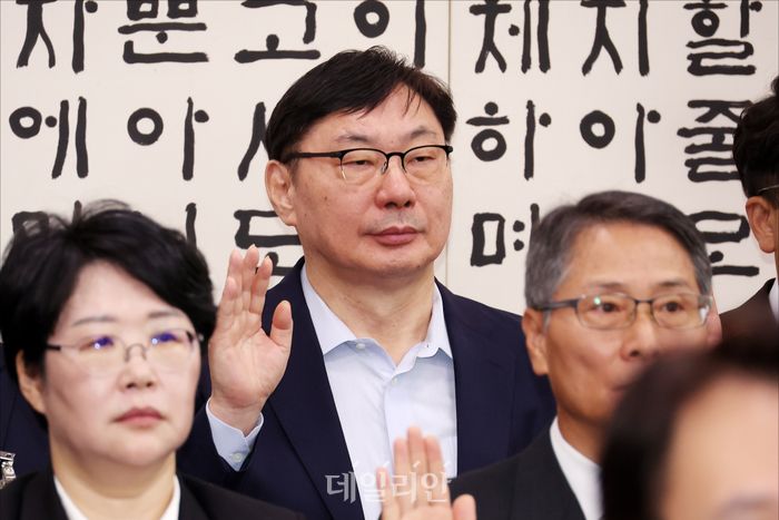 이화영 전 경기도 평화부지사가 14일 서울 여의도 국회에서 열린 국회 법제사법위원회 법무부 등에 대한 2025 국정감사에서 증인선서를 하고 있다.