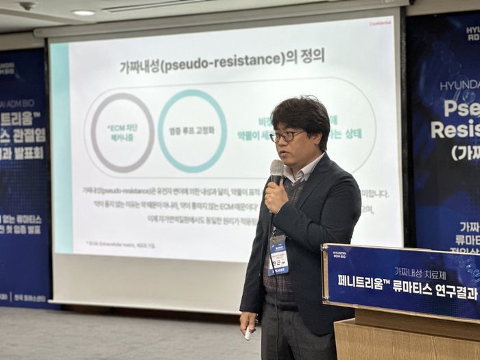 이날 발표를 맡은 조원동 현대ADM바이오 대표는 “지난 7월 췌장암에 대한 연구 결과를 발표한 데 이어 오늘의 대상 질병은 류마티스 관절염과 다발성 경화증”이라며 “항암 치료제를 개발하겠다면서 왜 갑자기 자가면역질환 이야기를 하는지 의문을 가질 수 있지만, 암과 자가면역질환은 ‘면역’이라는 측면에서 같은 궤도에 있다”고 설명했다.