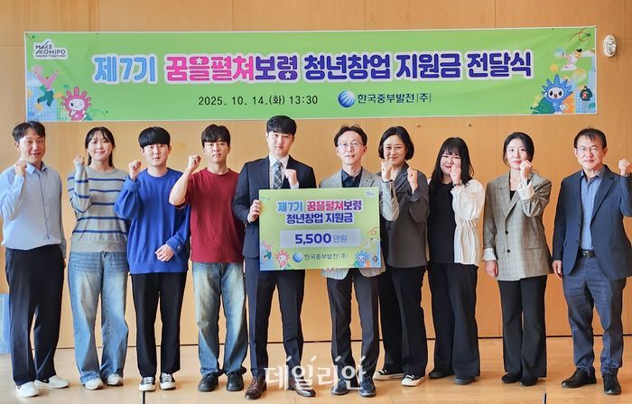 한국중부발전은 14일 충남 보령 본사에서 청년창업 지원사업 '제7기 꿈을 펼쳐 보령' 청년창업 지원금 전달식을 시행했다.